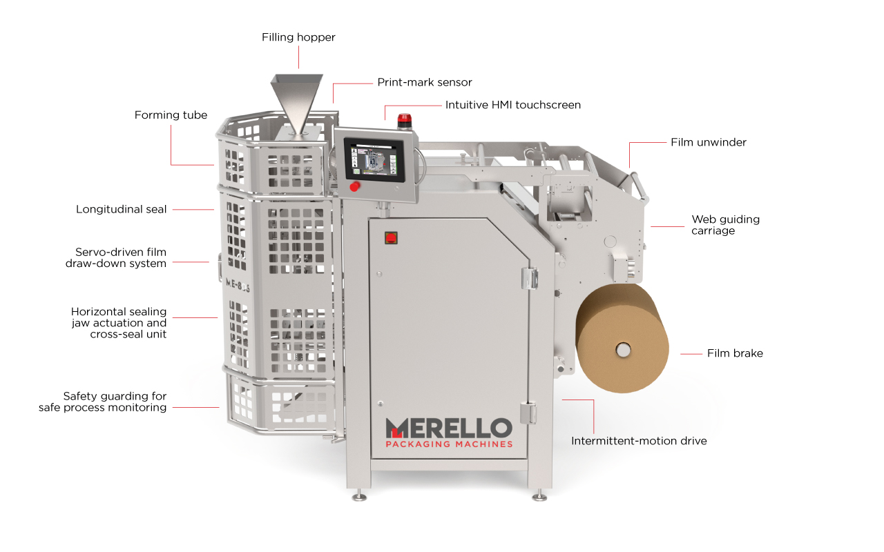 The ME-806D intermittent cycle packaging machine is designed to offer the perfect balance between speed and quality, suitable for production rates of up to 65 bags per minute.
