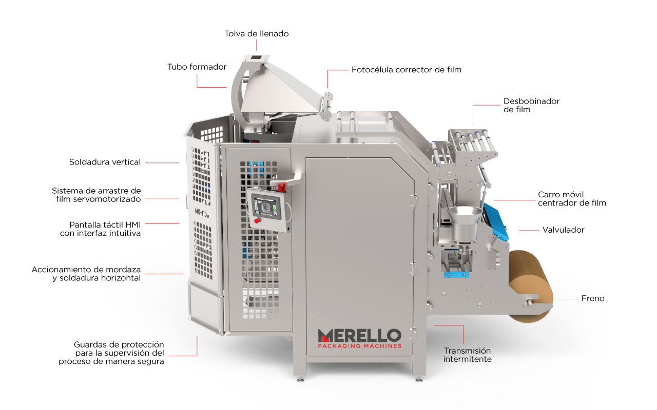 La ME-806LF está diseñada específicamente para el envasado de grandes volúmenes, siendo una máquina robusta y de alto rendimiento que se adapta a las exigencias de entornos industriales. Esta envasadora permite la integración de diferentes sistemas de dosificación, como pesadoras, volumétricos o sin-fín, lo que optimiza la alimentación del producto y facilita las tareas de los operarios, mejorando la eficiencia de la línea de producción.